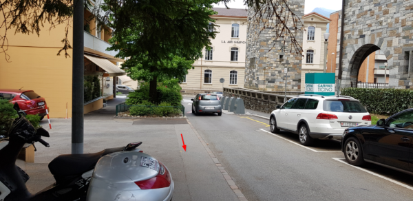 The office is situated at the entrance between Via al Colle 6 and Via Cortivallo 3A, on the 1st floor, first door in the left.